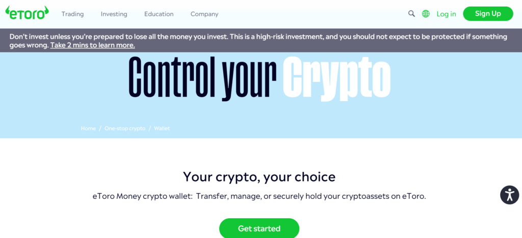 For beginners, eToro’s integrated wallet works well. For advanced security, use a hardware wallet like Ledger.