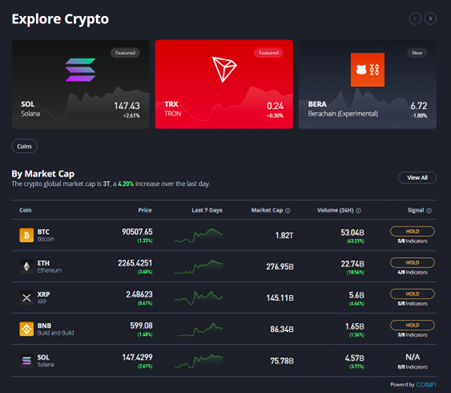✅Clean, intuitive dashboard: The layout is well-organised, and finding different cryptocurrencies is effortless.